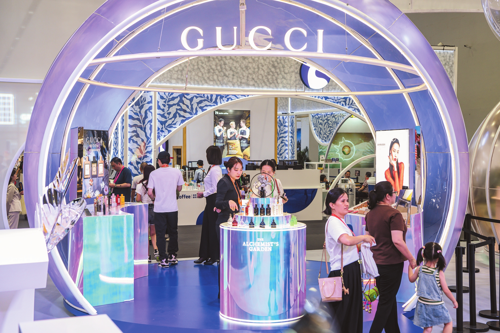 4月14日,第四届消博会期间,现场布置精美的展馆与丰富的展品吸引了不少参会嘉宾驻足观看。本报记者 苏弼坤 摄