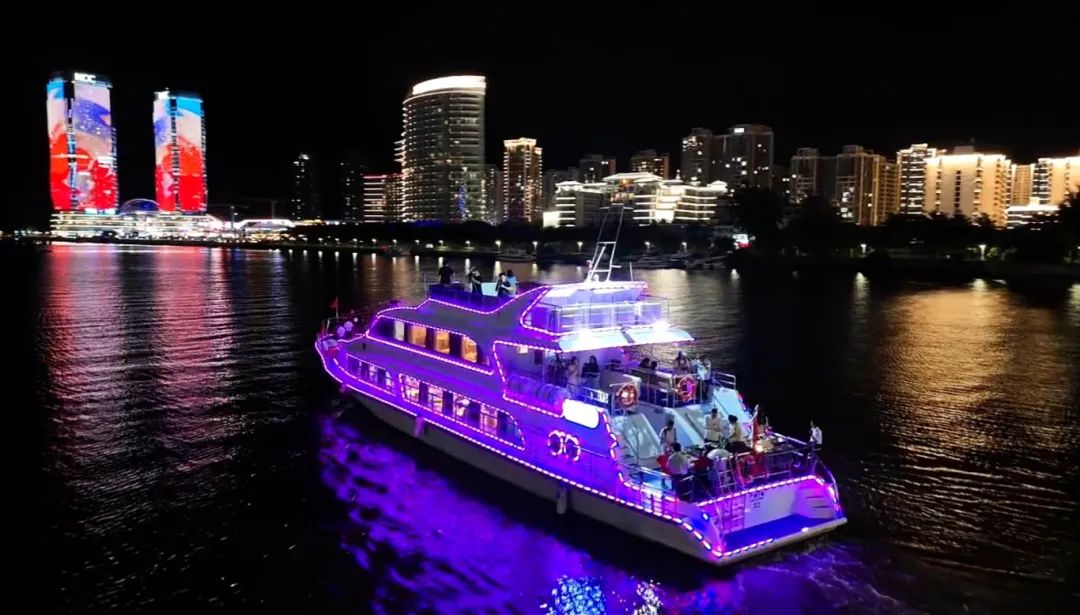 在华灯初上的时刻,“美兰1号”观光游船华丽启航!游船一路途经世纪大桥、东坡老码头商业街、华彩·海口湾广场、天空之山等多处网红打卡点,带你欣赏海口的城市夜色和滨海美景,还有萨克斯演出、KTV娱乐嗨翻全场!