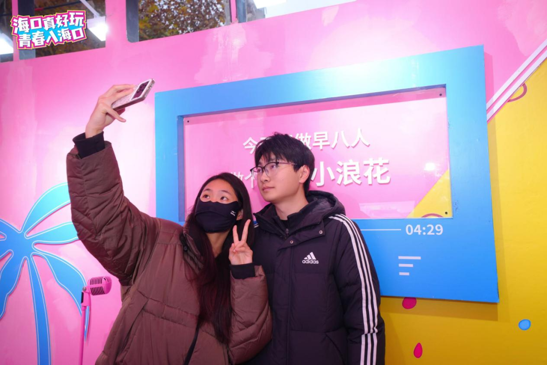 在中国地质大学校园内,粉色的老爸茶海口巴士带着热带滨海城市的热情闪现,活动现场热闹非凡,同学们踊跃“登上”老爸茶海口巴士打卡拍照,在许愿墙上许愿、体验海口旅游风光、特色表演、游戏互动等多个环节,现场还吸引了来自海口的学子上台推介自己的家乡,邀请同学们寒假去海口玩。