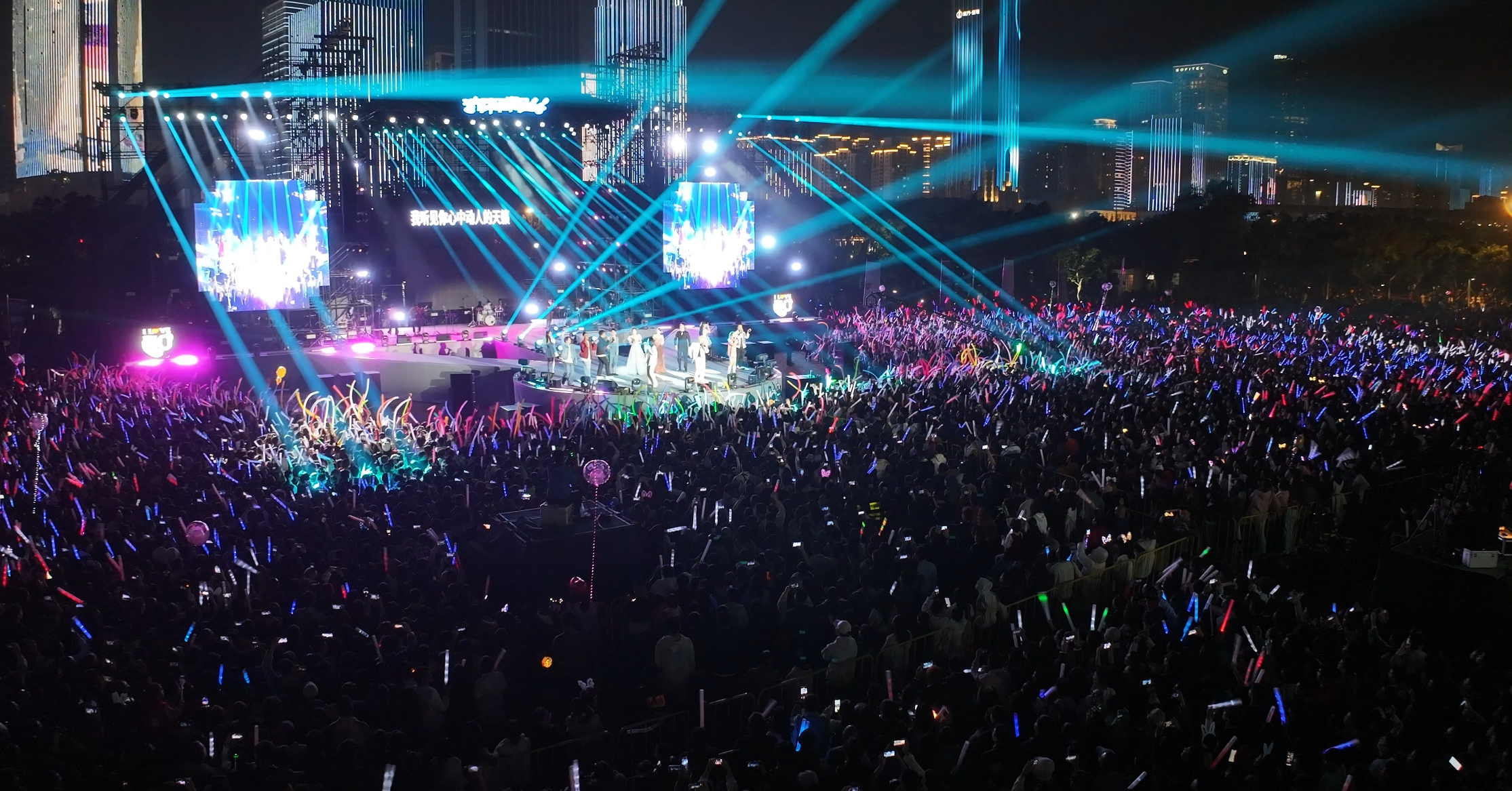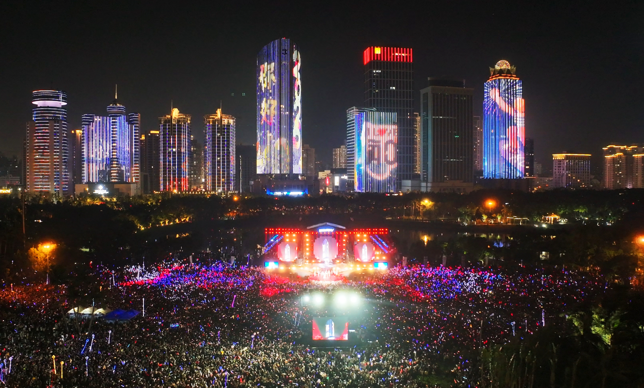 音乐会尾声,全场观众合唱《我爱你中国》,唱响对祖国的热爱和深情祝福。此外,音乐会还在海南广播电视台融媒体端,海口旅游视频号、抖音号、今日头条进行现场直播,共有148万(人次)网友收看直播,与大家一起线上听歌,“云”跨年。