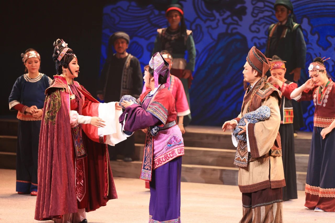 剧本台词方面,大刀阔斧精简并转化为通俗易懂表述,让故事如清泉流淌,自然沁入观众心田,又巧妙保留琼剧独有的韵律美感,使其朗朗上口。