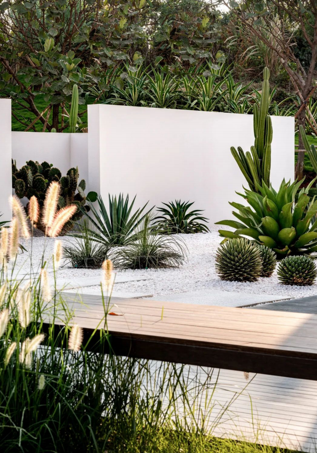 当整体建筑空间都祛除装饰主义时,景观也需要以最少的语言表达出自然、内敛、质朴的侘寂感受。印象剧场将采用大量沙生植物来进行景观设计,沙生植物适应当地气候, 具有独特的形态和外表,在林木蓊郁中, 与白色宁静的建筑形成一道靓丽的风景线。