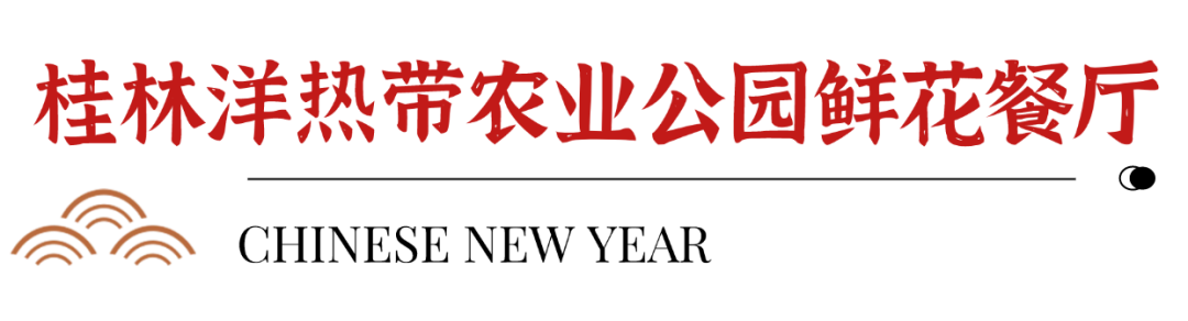 浓浓年味,承载着新春祈愿,桂林洋热带农业公园鲜花餐厅推出荣华富贵年夜宴2188元(10位)、飞黄腾达年夜宴2888元(10位)、年夜饭1588元。
