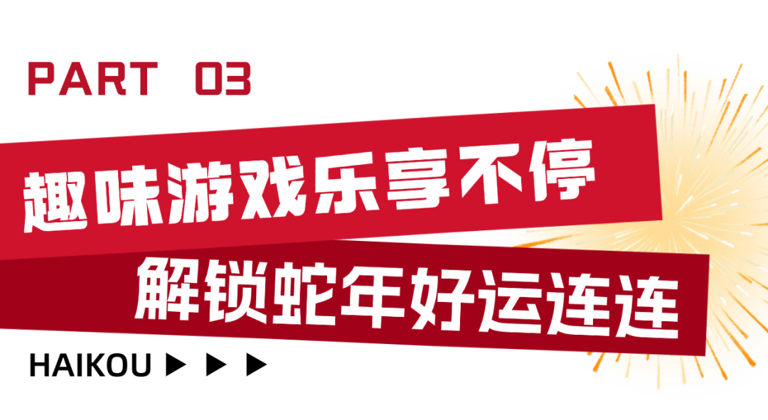 活动内容:财神送财+造字许愿+金蛇投壶+画蛇添“福”+“蛇来运转”剪纸DIY+蛇年猜猜乐+蛇年问答挑战