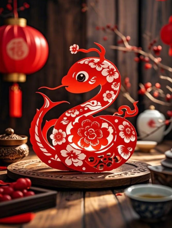根据个人创意和喜好,自由裁剪出各具特色的蛇年剪纸作品,让每一剪都蕴含着对新年的美好祝愿!