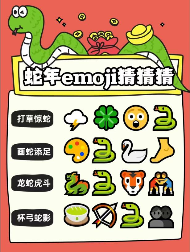 根据给出的emoji表情,巧妙猜出与蛇相关的成语(特别包含趣味谐音梗)。在限定时间内答对最多且最快的乘客将获得胜利,快来挑战你的知识储备,赢取丰厚奖品吧!