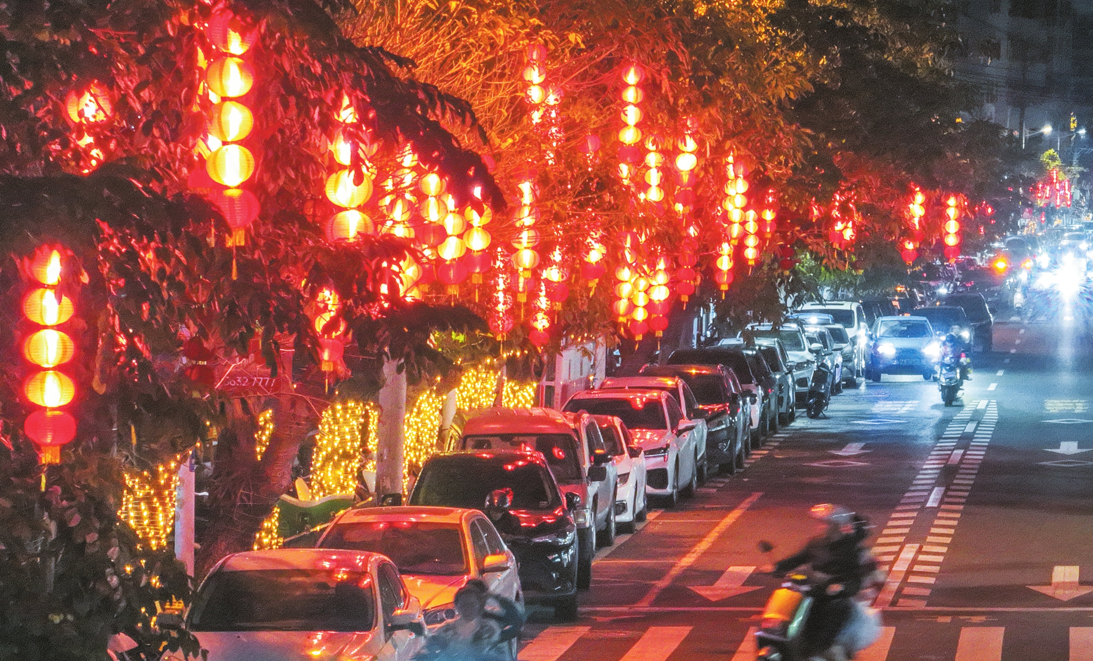 1月19日晚,琼山区文庄路上挂起的一串串红灯笼,营造了喜庆热闹的节日氛围。目前,海口府城多个街巷已经张灯结彩,喜迎农历蛇年的到来。 本报记者 苏弼坤 摄