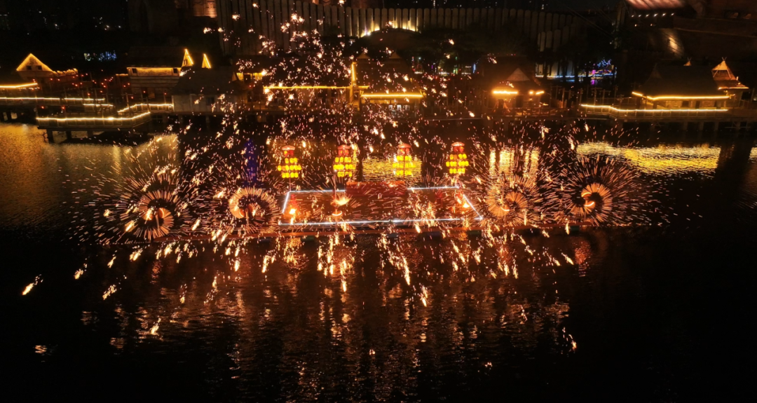 春节期间,观澜湖华谊冯小刚电影公社以“金蛇舞春——公社里的中国年”为主题,将逼真的电影场景、精彩的演艺节目、互动的游戏体验和精美的礼物融为一体,为您打造一场充满年味的春节盛宴。沉浸式实景演出《再现芳华》、《南洋往事》、各类民俗绝技绝活表演、红包瀑布、许愿树、非遗小吃、写春联、趣味游戏等活动齐聚,更有迎新入园礼、新春定制礼等惊喜。无论您是全家出游、好友相聚,还是情侣约会,电影公社都能满足您对新年的所有期待,让您感受到节日的喜庆和祝福,开启充满仪式感的新年旅程。除此之外,还有萌猫闹春灯会、梦幻光影秀、非遗火壶及非遗铁花秀点亮春节。