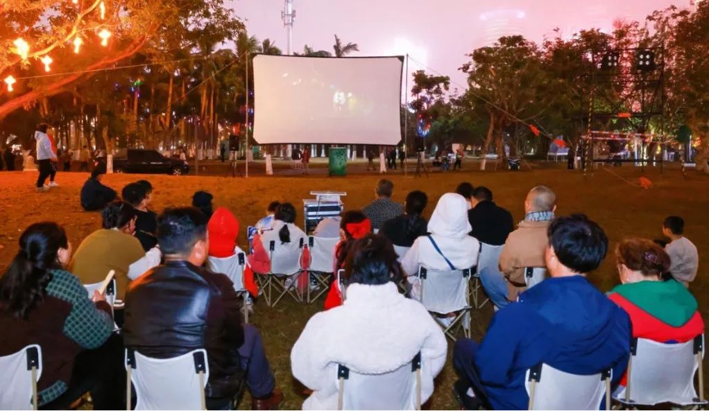 宁静夜晚,没有什么比收工后和亲友在草坪上看场电影,更放松的事情了。一天一场草坪电影,享受惬意夜生活。
