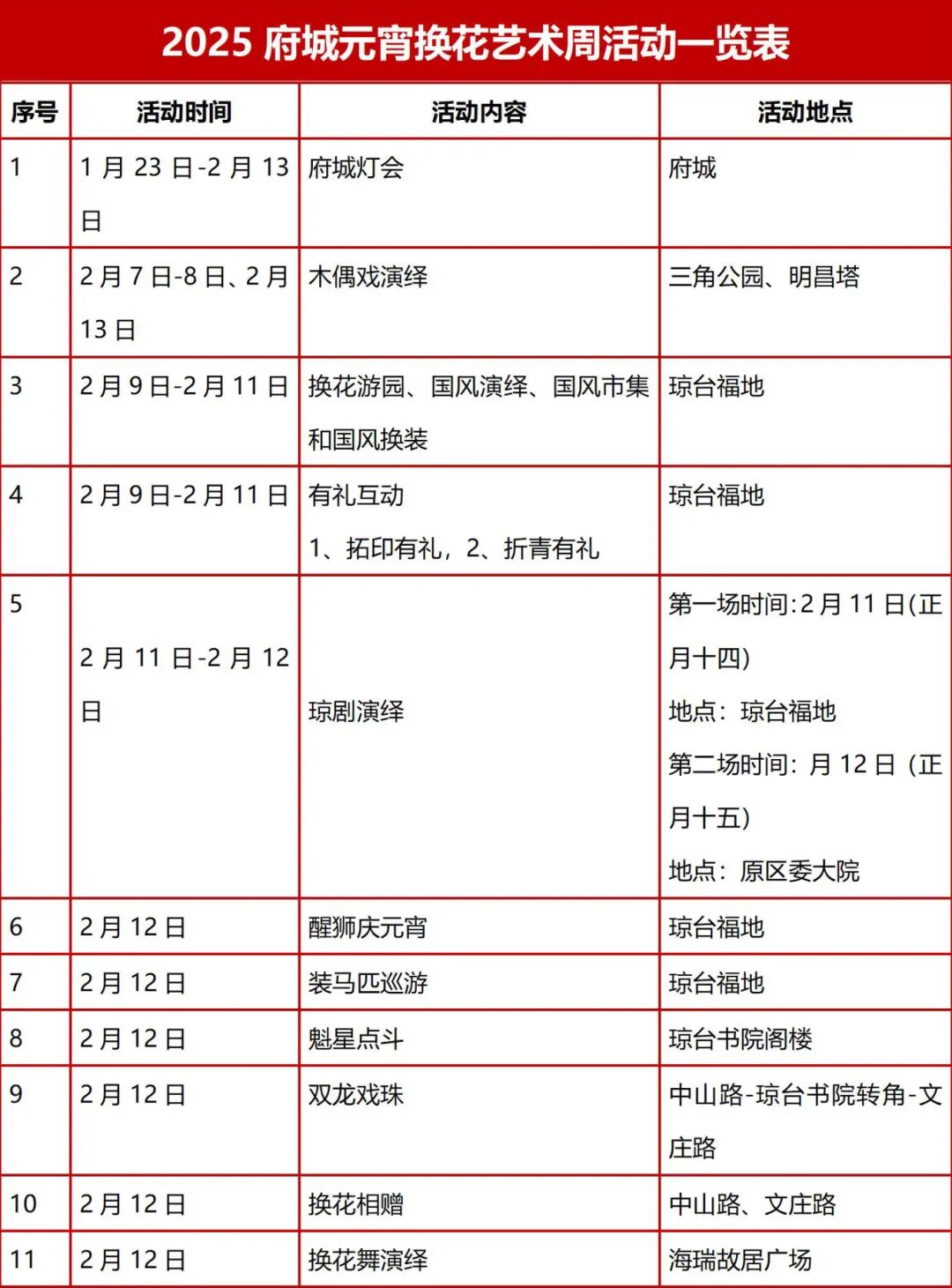 临近元宵节时,府城琼台福地将举行换花游园活动。活动现场,既能欣赏花神起舞、国风换装等节目演出,还能体验换花游园、丁面手工坊、搓元宵丸等传统民俗。