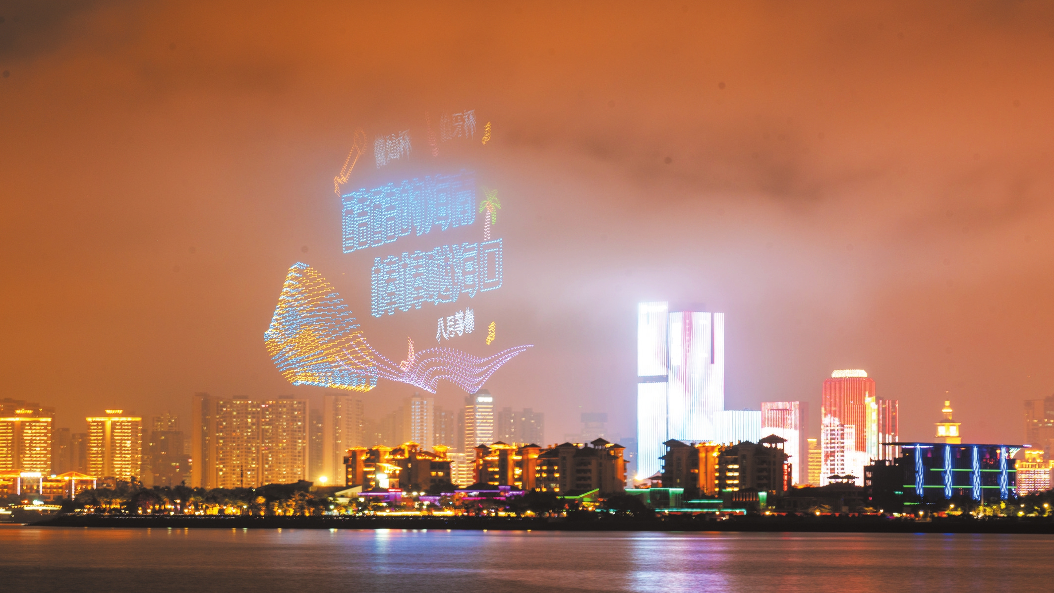 当晚,万绿园、自在湾、云洞图书馆等观赏区域人头攒动,大家翘首以盼,共同见证了这场科技与艺术完美融合的视觉盛宴。3000架无人机如繁星般腾空而起,生动展现了海口的历史文化和现代风貌。表演发射烟花超5万发,整个观众观赏区总长度达6公里,椰树、三角梅、七彩祥云等高空礼花弹依次绽放,点亮了夜空,也点燃了人们心中的激情与梦想。