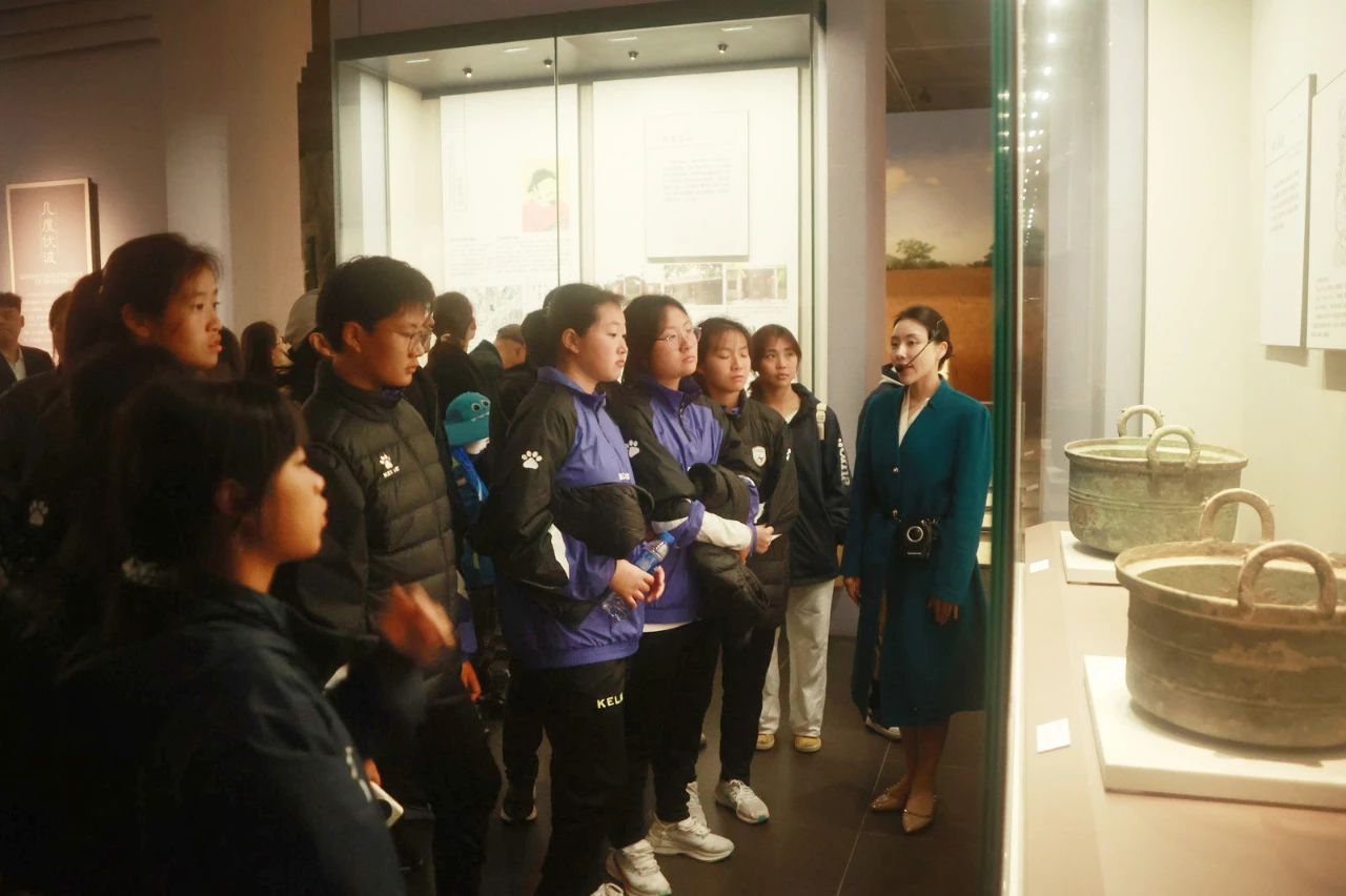 了解一座城,从博物馆开始。队员们走进海南省博物馆,仿佛开启了一场穿越时空的奇妙之旅。这里的每一件展品都诉说着一段故事,见证着海南的沧桑变化。在讲解员的引导下,队员们逐层参观了省博物馆的各个展厅,参观各类展品,通过文物与历史对话,深入了解海南的海洋文化、民族风情与自贸港建设成就。