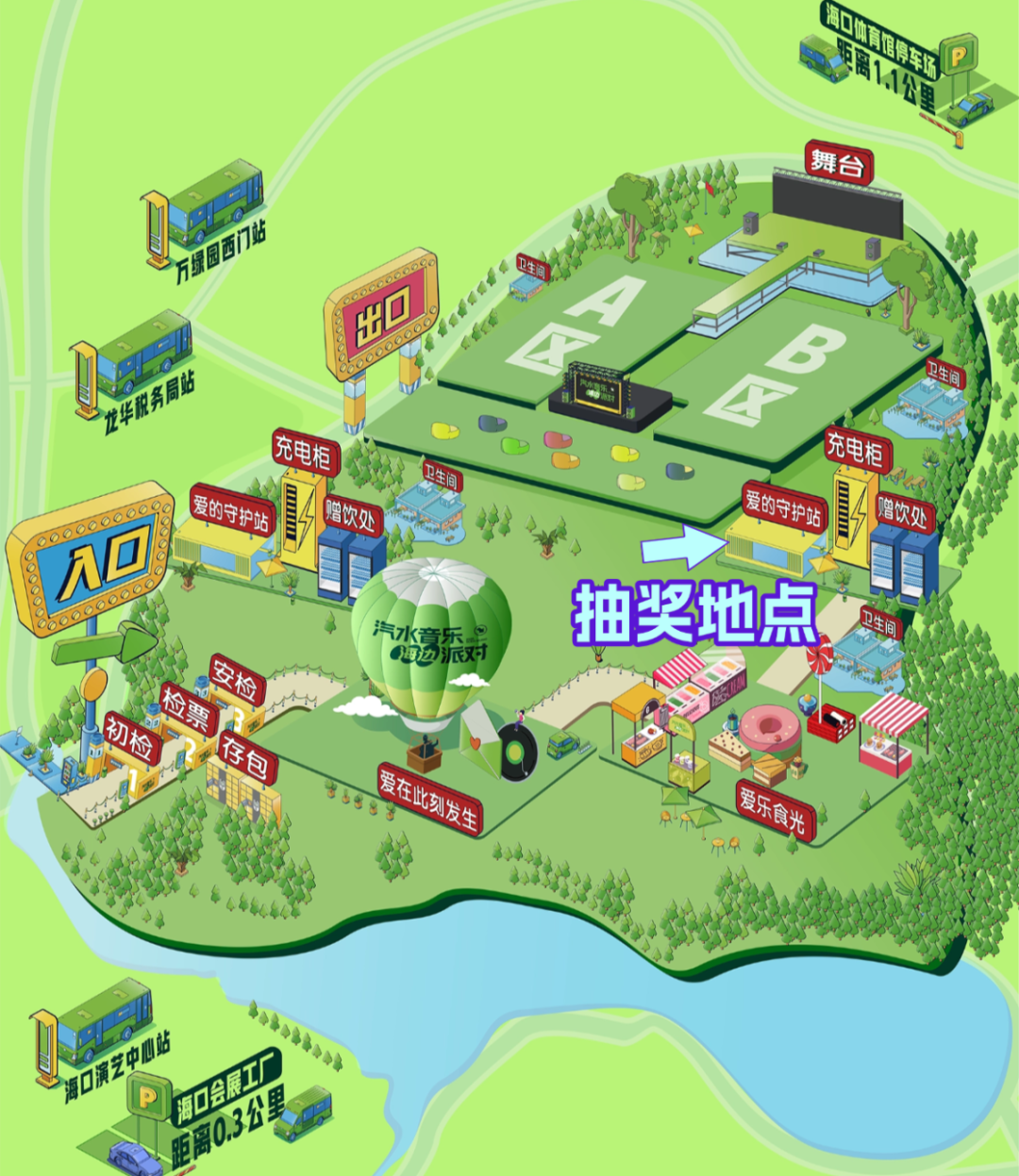 1.市民游客在汽水音乐海边派对现场东侧【爱的守护站】海口市旅文局摊位出示集章卡即可参与抽奖。