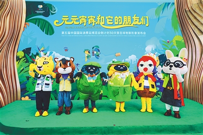 在活动现场,消博会吉祥物“元元”“宵宵”和其朋友们均身着雨林服饰,组成热带雨林保育研究队集体亮相。除了以海南长臂猿为原型的“元元”“宵宵”之外,以海南本土珍稀雨林动物为原型的四名热带雨林保育研究队成员首次亮相,包括原型是海南云豹的“豹博士”、原型是海南兔的“免米”、原型是海南鼯鼠的“闪电”、原型是海南孔雀雉的“吱吱”。