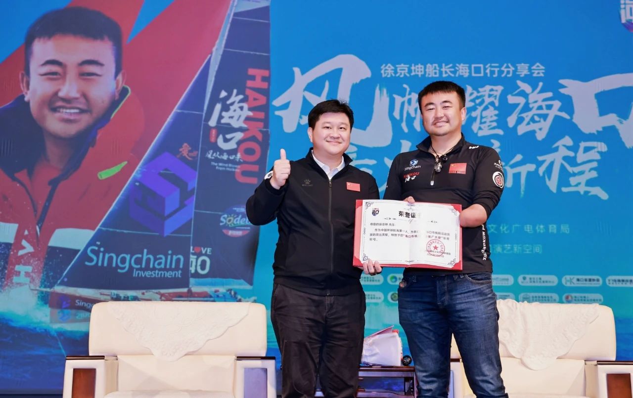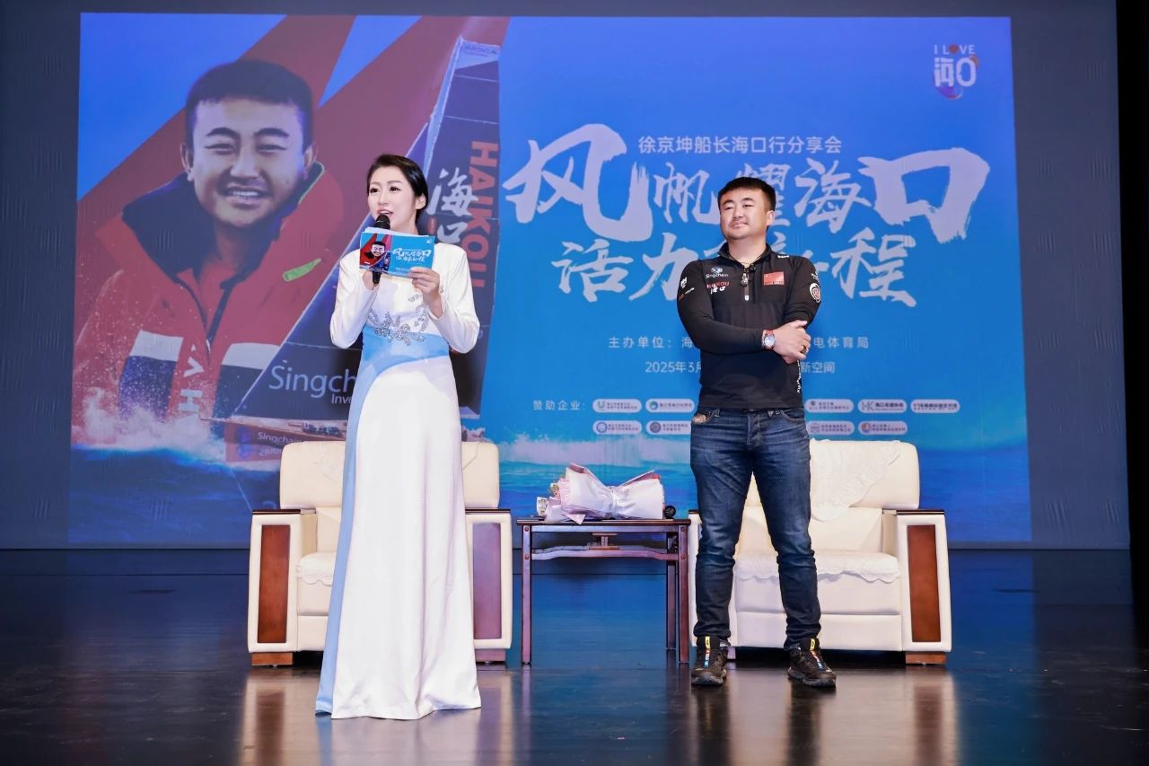 3月23日,徐京坤船长海口行分享会在海口演艺新空间二期综合剧场隆重举行。活动中,徐京坤船长向大家分享了他驾驶“海口号”帆船完成旺代环球帆船赛的壮丽征程,现场观众无不为之动容。海口市旅游和文化广电体育局,对徐京坤船长在旺代单人不间断环球帆船赛中取得的优异成绩表示祝贺,并为徐京坤船长颁发了“海口市帆船运动推广大使”荣誉证书。