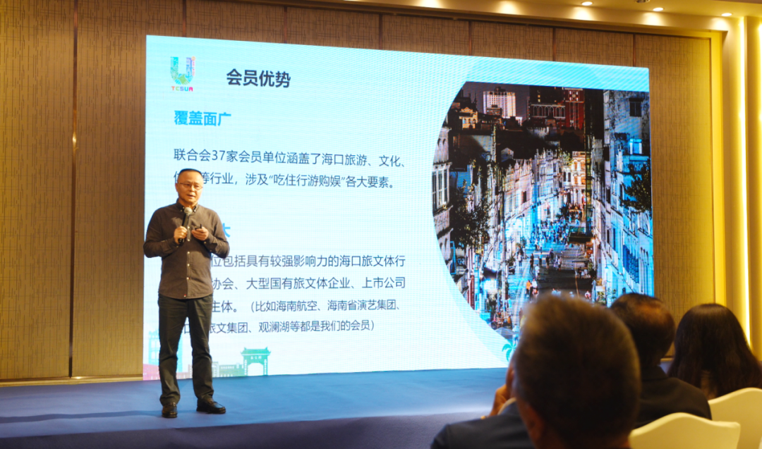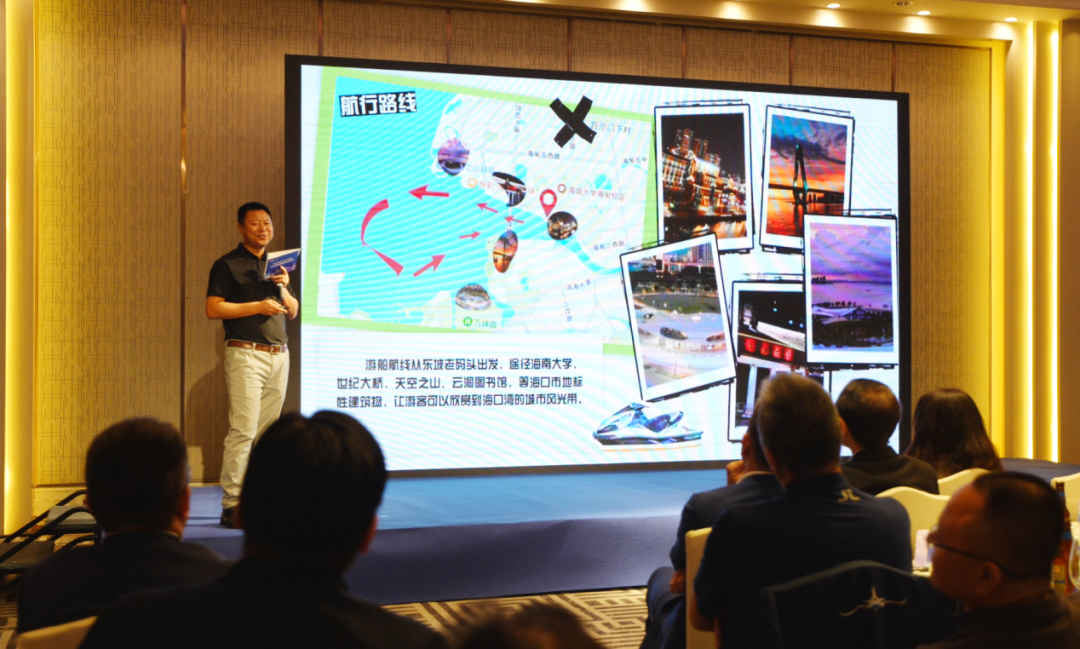 在现场,海口市旅游商品与装备协会会长郗志强介绍了海口因海而生、因海而兴及独特文化渊源;海南海洋旅游投资开发有限公司副总经理张忠兴推介了海口湾夜游特色项目。