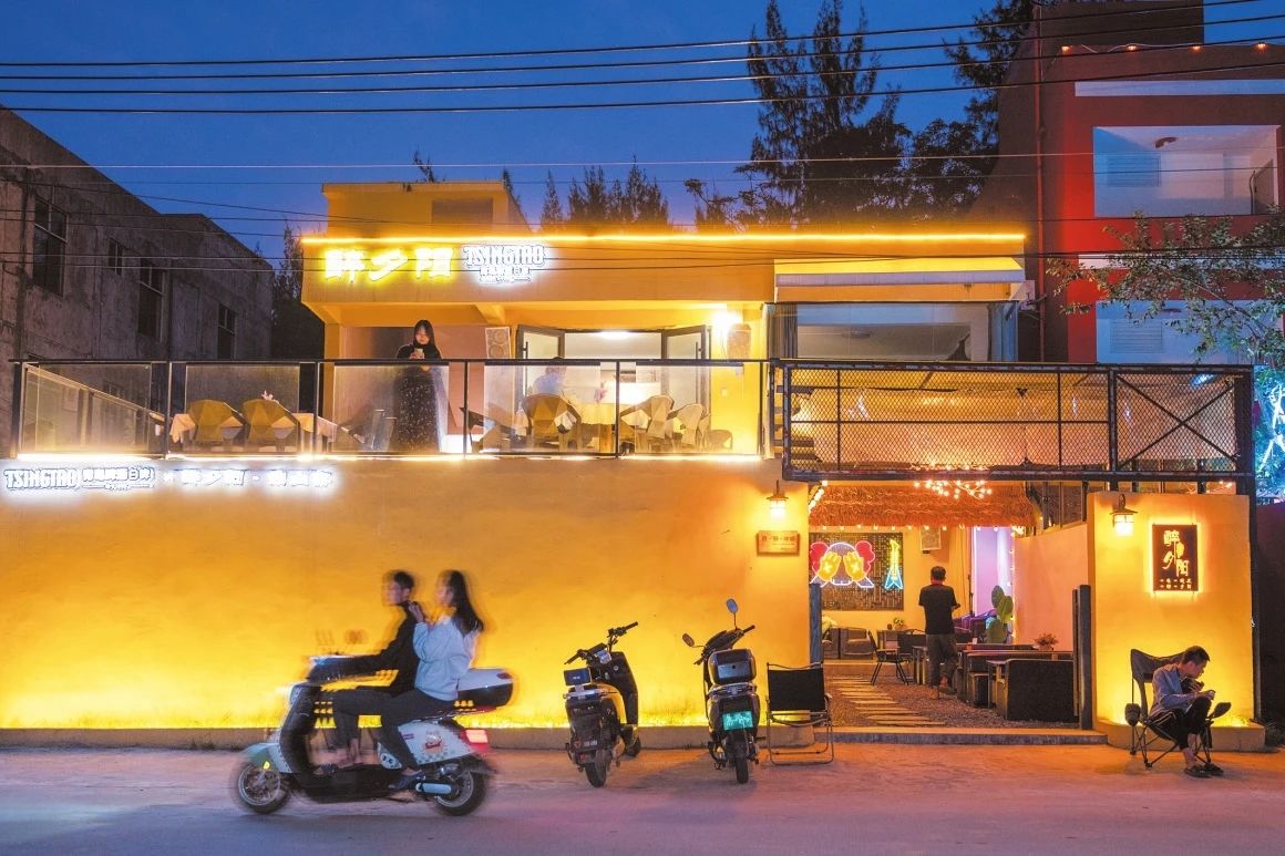 暮色降临,荣山寮村的特色音乐餐吧里亮着暖融融的光,人们在此享受悠闲时光。海口融媒体中心记者 石中华 摄
