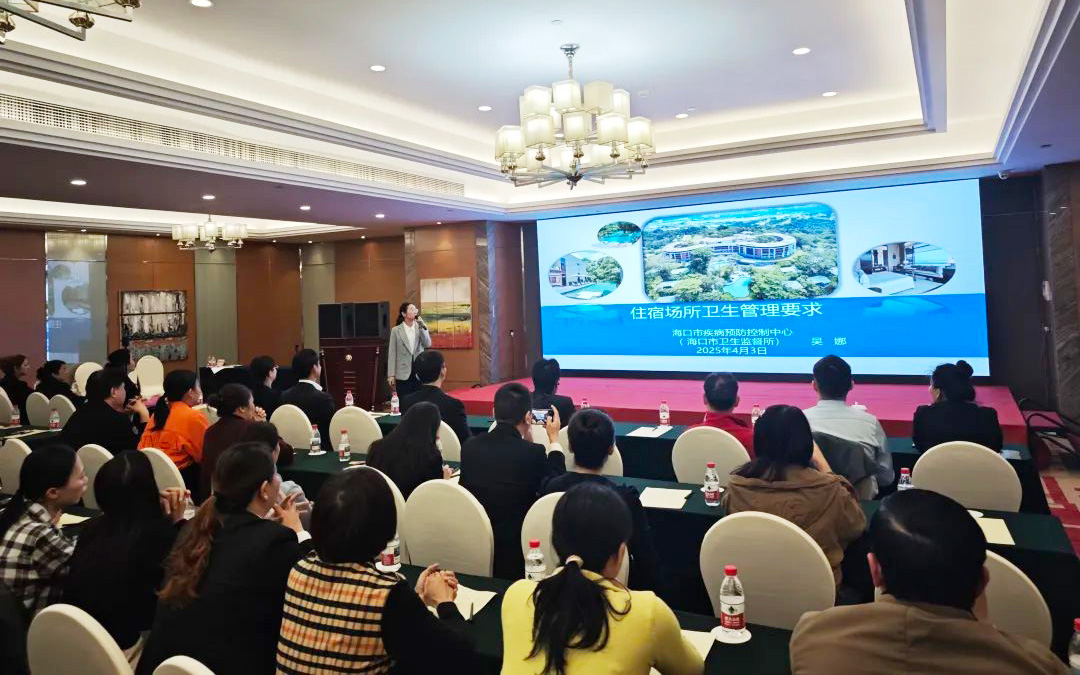 海南省卫生有害生物防制协会专家组成员杨新艳对酒店管理人员进行病媒生物防制知识培训,提升酒店环境卫生维护能力。