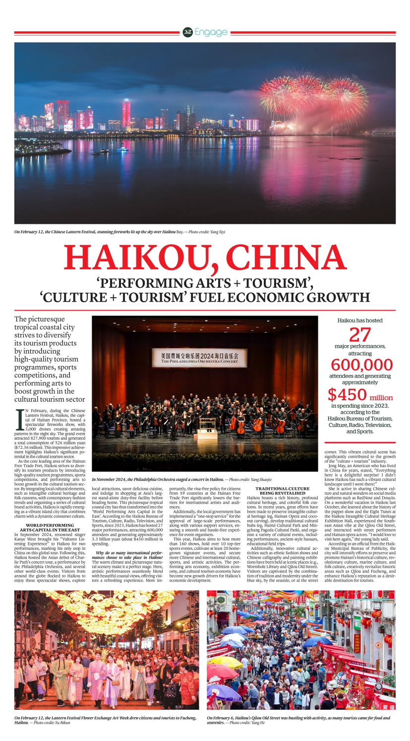 今年,海口计划引进剧目160余场次,举办高水平体育赛事10场以上,培育本土品牌流量赛事20场以上,争取更多高品质国内外知名文化、体育和演艺活动落地海口。演艺经济、会展经济、文旅经济已成为海口经济发展新的增长极。