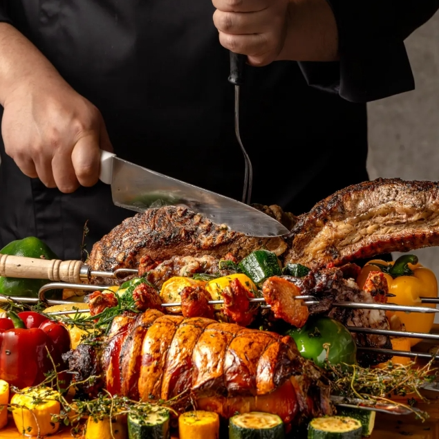 以烧烤+音乐+酒道馆为核心打造沉浸式用餐体验。鲜肉现烤,真材实料,秘制风味。