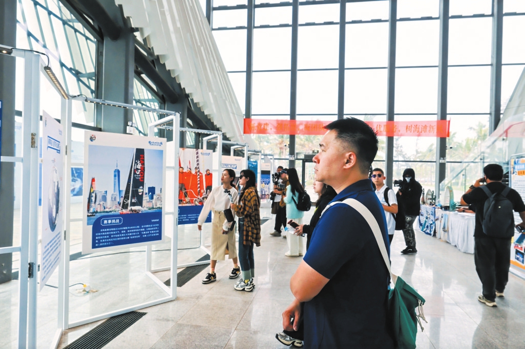 市民游客在参观“海口号”帆船主题图片展。 组委会供图