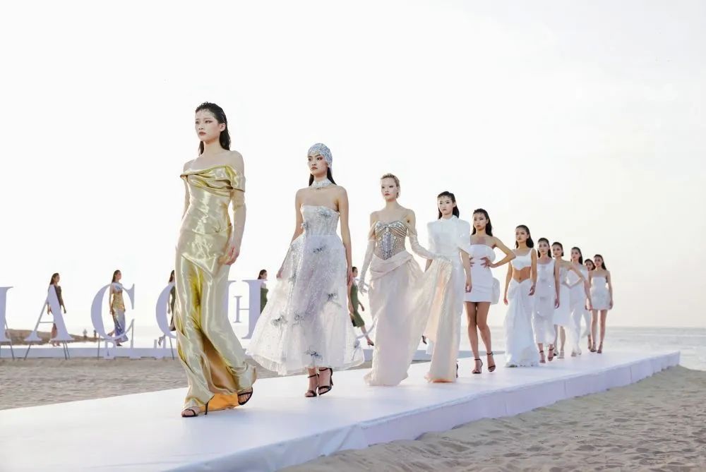 4月15日,在消博会时装秀海边秀场,来自越南的品牌设计师兼首席执行官阮氏茶玲(Nguyen Thi Tra Linh)带来Hacchic Blush AW25「璀璨破晓」主题秀。新华社发