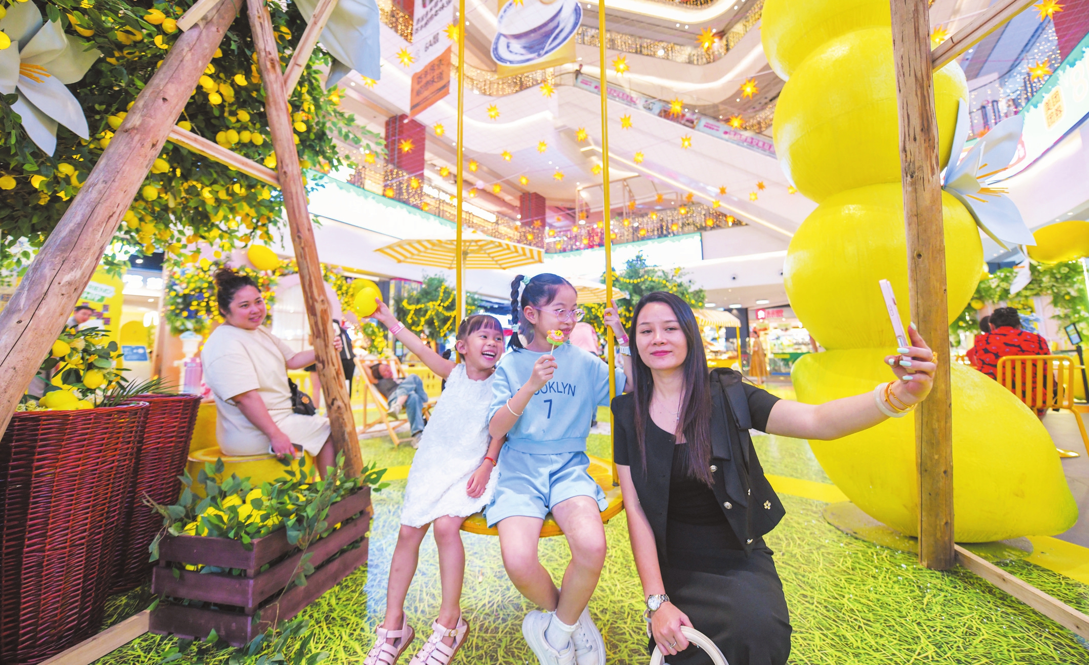 5月5日,在友谊阳光城,“柠檬小镇”装饰吸引市民游客前来打卡。本报记者 苏弼坤 摄