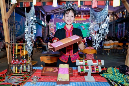 活动期间,“电竞 + 潮玩非遗夜市”成为焦点,而黎锦在其中独树一帜。作为海南极具代表性的非遗技艺,黎锦在本次嘉年华中得到了全方位展示。活动特别邀请了非遗传承人张潮英女士来到现场,她上台分享了黎锦的历史渊源、独特技艺以及传承故事,让在场观众对这一古老技艺有了更深入的了解。