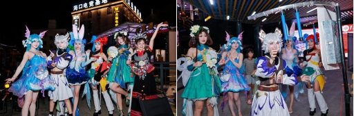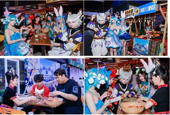 除了非遗与电竞的融合,本次嘉年华还带来了丰富的跨界娱乐体验。专业COSER团队身着王者荣耀、热门动漫及游戏角色服饰,在园区内巡游,与游客互动拍照、分享角色故事,并设置电竞知识问答、舞蹈模仿挑战等环节,为游客送上限量版电竞周边和抽奖券。