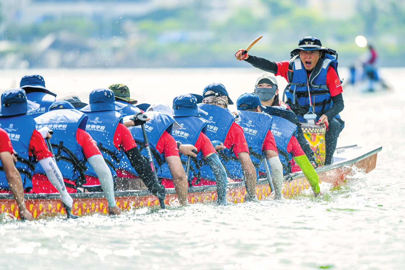 为争取好成绩,各支队伍在训练中不畏酷暑,拼尽全力。海口市麓岛龙舟队由海口万华·江东麓岛业主、海口哈罗国际学校教职工和家属等人员组成,队伍中不乏多名外籍人士。“我很喜欢中国的传统文化,参与龙舟赛一定是我人生中的难忘经历。”英籍队员Suki兴奋地说。领队宋懿伦介绍,该队既有经验丰富的选手,也有第一次接触龙舟的“萌新”。通过“老带新”,队员们很快掌握了赛龙舟的要领,默契十足。“队员们热情高涨、信心倍增,我们将全力以赴,向冠军发起冲刺。”宋懿伦说。