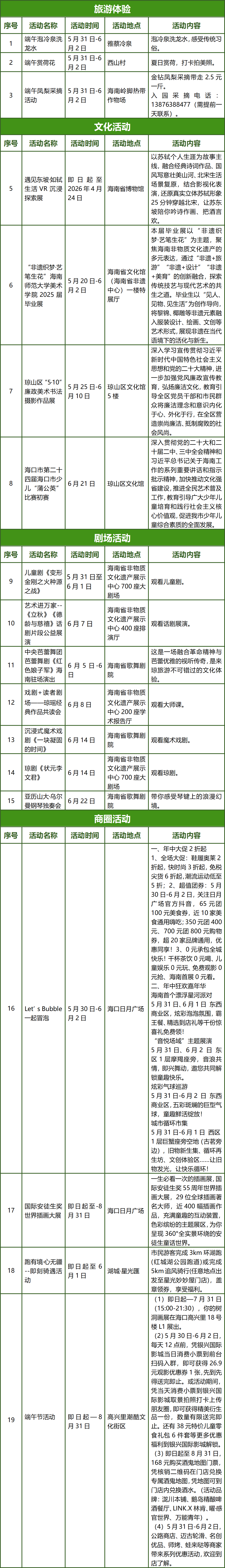 琼山端午旅文活动一览表