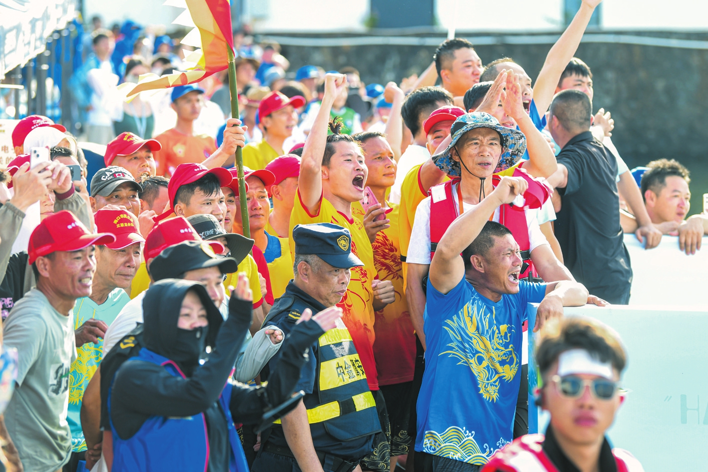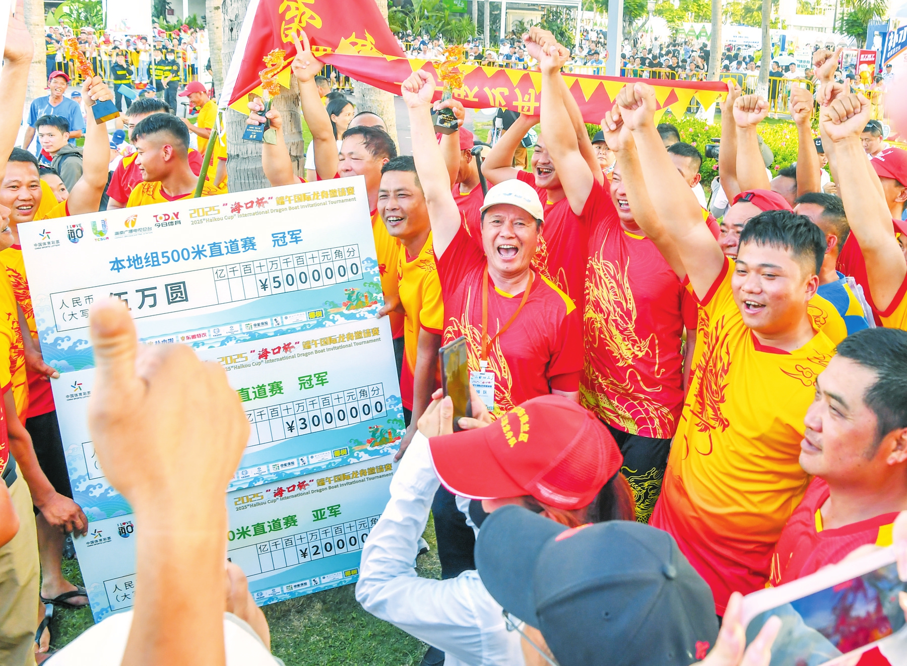 6月1日,在2025“海口杯”端午国际龙舟邀请赛现场,观众为参赛队伍呐喊助威。本报记者 苏弼坤 摄