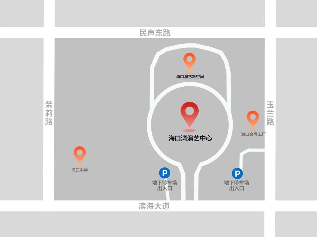 私家车/出租车:请定位“海口湾演艺中心”为目的地,导航前往即可;到达海口湾演艺中心后,向I图片海口方向直行上台阶,即可到达海口湾演艺中心·大剧场
