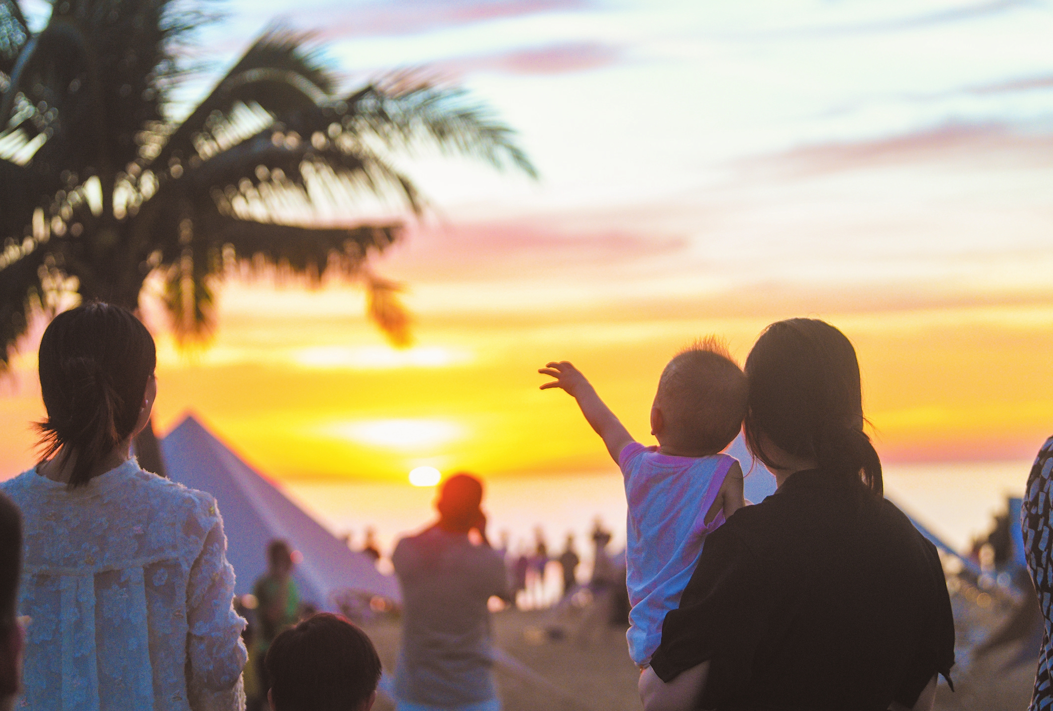 暮色渐浓,荣山寮沙滩上,食客在帐篷里吃海鲜、品美酒,孩童举着气球在帐外奔跑,年轻人在悠扬婉转的民谣中碰杯。海浪轻摇,将最后一缕金红揉碎成星斑,整个世界都变得柔软起来。