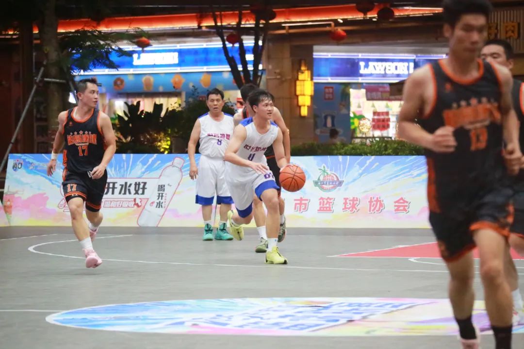 6月16日晚,2025“海口杯”篮球联赛龙华赛区正赛小组赛最后一轮在友谊·国贸城上演,为市民带来一场场精彩的体育盛宴。