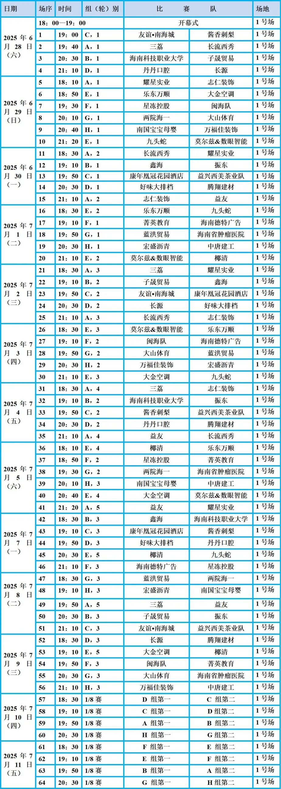 2025年“海口杯”篮球联赛(秀英赛区)公开赛赛程表