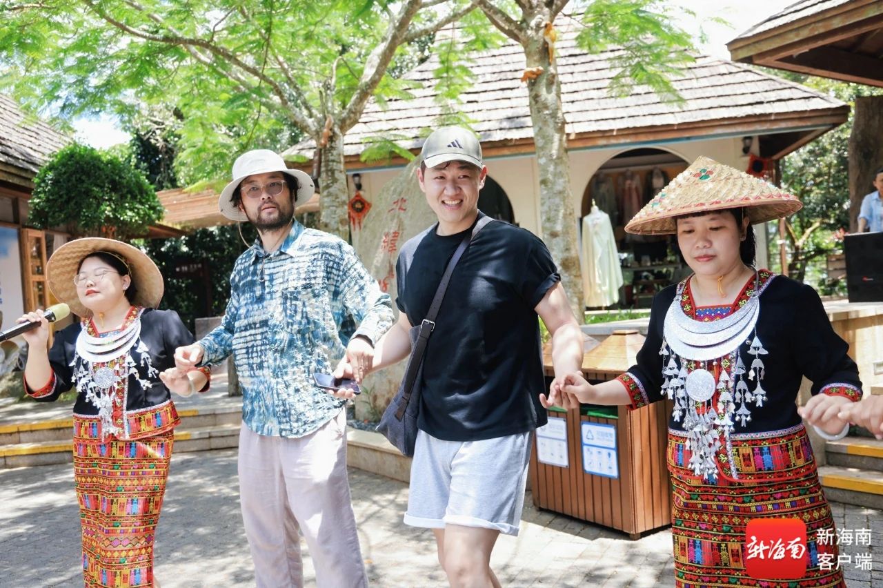 保亭的槟榔谷黎苗文化旅游区让博主们沉浸式体验少数民族文化。他们换上少数民族服饰拍照,观看纹面黎族阿婆织锦,欣赏大型原生态黎苗文化实景演出《槟榔・古韵》,参与竹竿舞互动,还体验了竹编和扎染手作,品尝“黎王家宴”簸箕餐。日本博主小智和知香还大胆尝试了鱼茶。此外,山地滑车、田野卡丁车、雨林水漂等项目也收获博主们的一致好评。