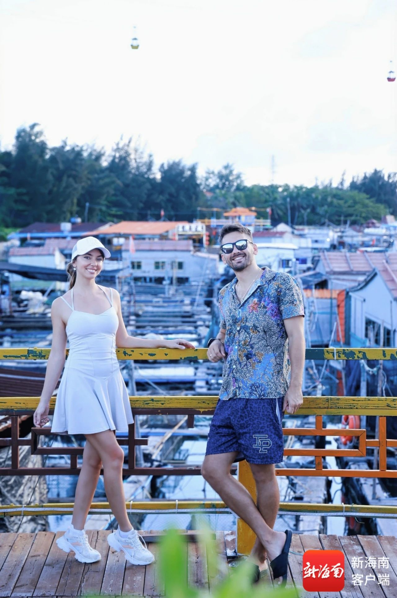 多国博主在疍家渔排打卡拍照。
