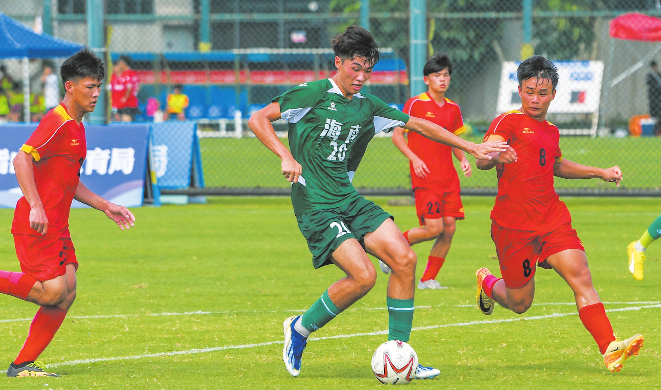 7月16日,2025年海南省中学生足球赛暨高中男子校园足球联赛在海口市中国足球(南方)训练基地开踢。来自海口、三亚、儋州、琼中、万宁、琼海、文昌、保亭、昌江等9个市县的14支精英球队、270名中学生参加激烈角逐。