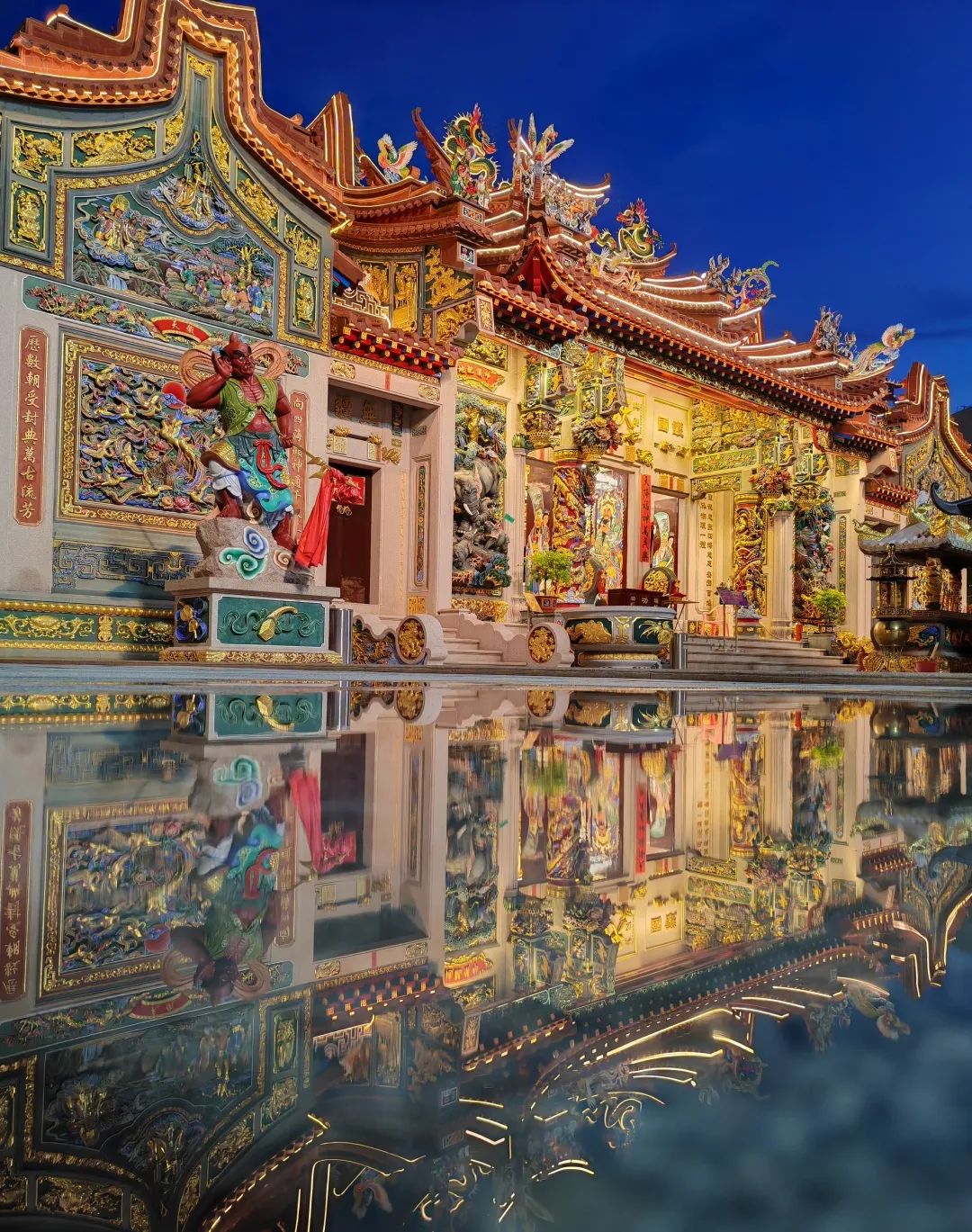 白沙门上村,一座恢弘庙宇历经三年精修重焕光彩。兴潮天后宫始建于元末明初,是潮汕先民渡海创业的精神灯塔。作为海上丝绸之路的重要节点,海南吸引了大量潮商驻足。他们在白沙门古港泊船贸易,建起这座联结乡情的殿堂。踏进宫门,潮汕工匠的匠心扑面而来:主殿双层屋顶凌空欲飞,14条盘龙石柱盘踞殿内,木雕贴金、瓷嵌壁绘绚烂夺目,仿佛在诉说着“百万潮人在琼”的奋斗史,这里不仅是祈福之地,更是侨胞寻根的圣地。