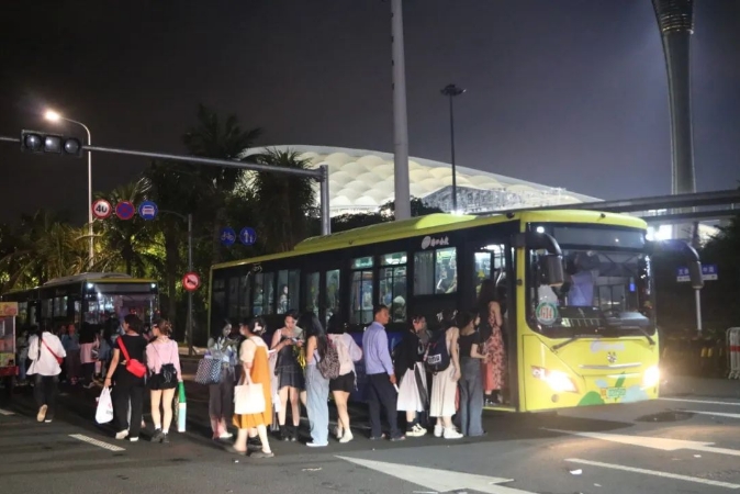 海口公交提醒观演群众,演出活动结束后所有免费公交专线车将原路返回,上车点为五源河体育馆文体中心中路,请留意以防误乘。因场馆周边网约车、出租车数量有限,难以保障快速疏散,建议观演群众优先选择乘坐公交车到达市区,再换乘出租车或网约车至目的地。如有咨询和物品遗落,可拨打12345服务热线或公交客服热线66663066。