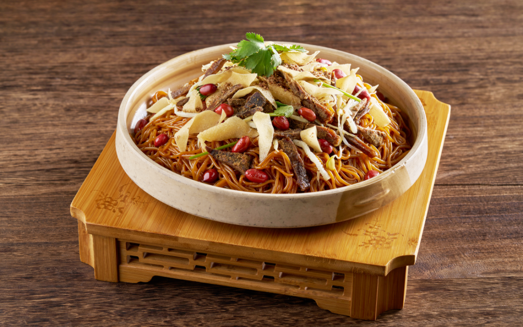 除了早茶,酒店餐厅里的琼菜也是顶好的,吃什么最消暑?这两道清凉美食值得一品。先说菠香牛脆,一口入魂的香菠火焰脆牛肉,那黄牛肉选得刁钻,要带点筋,才有嚼头。一口牛肉配一片菠萝,甜中带点俏皮的酸,汁水在嘴里炸开,什么暑气都赶跑了。