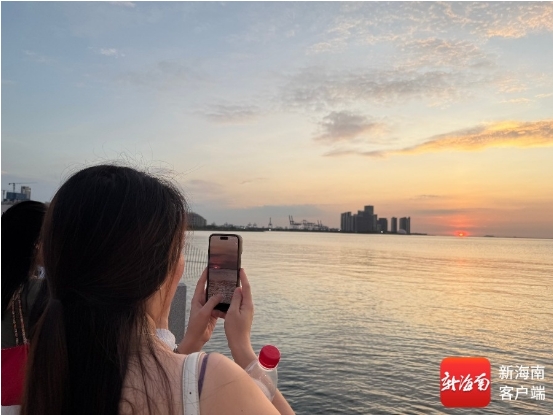“海口的落日晚霞太美了!我会把这里的美景分享给身边的朋友,让大家一起感受这份惬意与美好。” 美国游客Mark驻足在海口自在湾,一边按下相机快门,一边点赞天边燃起的“焰火”。