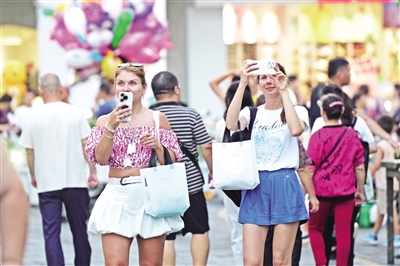 外国友人被骑楼中西建筑艺术交融吸引,纷纷打卡拍照。