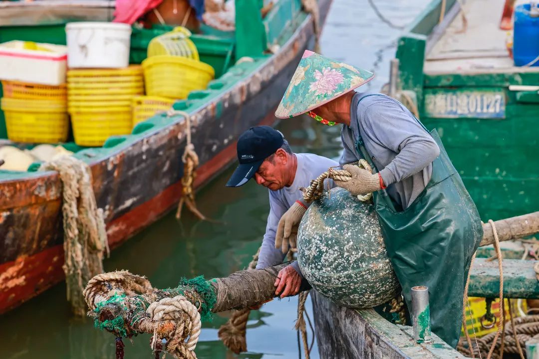 不少参赛的队员在紧张的龙舟训练之外,丝毫不松懈生计的准备。褪去暑热的渔港码头或自家门前,他们会仔细检查、修补即将投入生产的渔网,或是整理着船上必需的绳索浮标。这些看似琐碎的活计,也承载着村子发展的期盼。