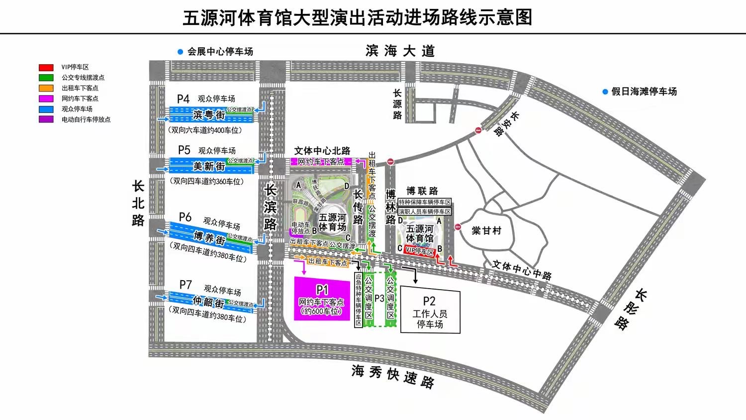 网约车请停放P1或停靠文体中心北路北半幅候客。