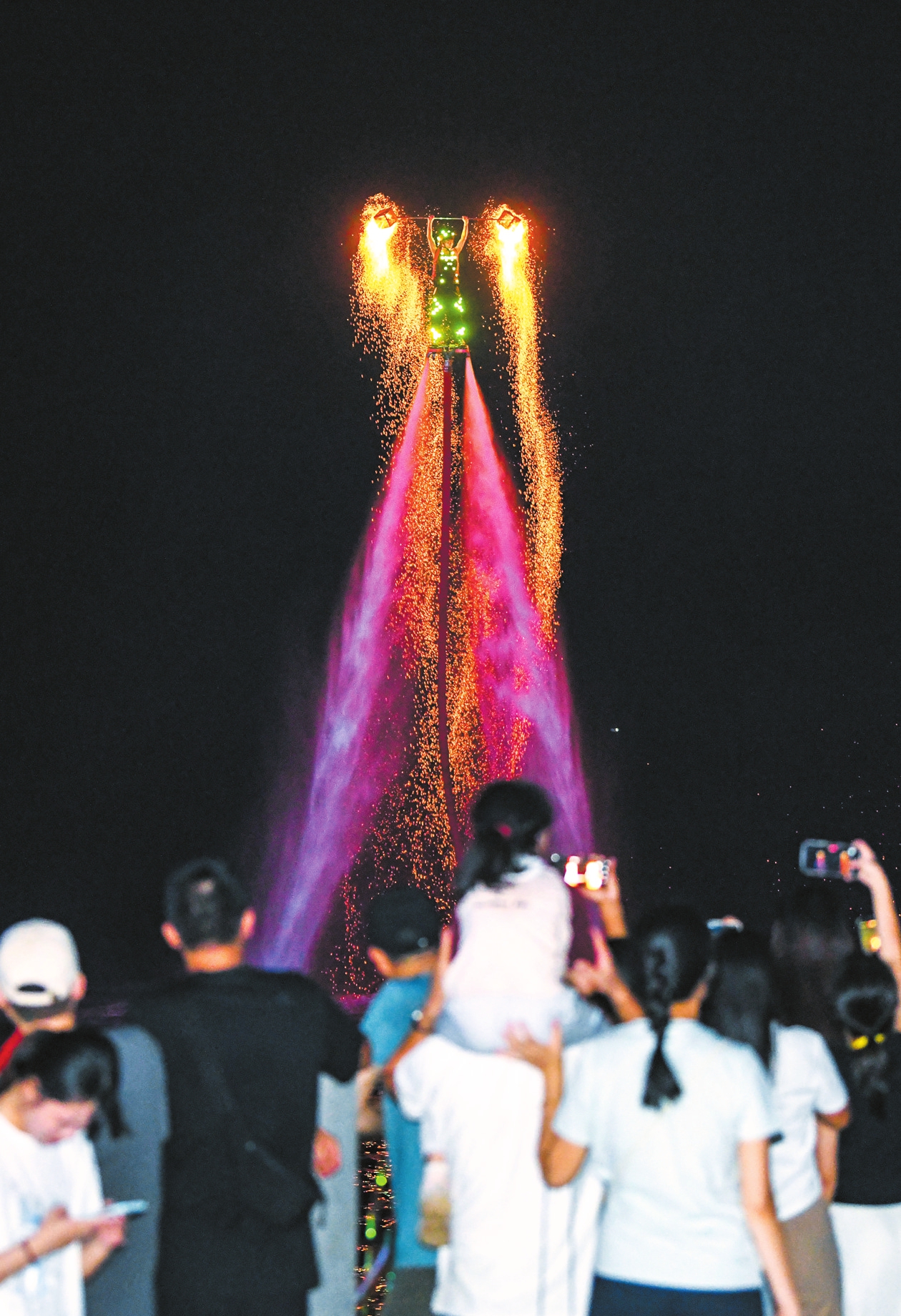 8月2日,2025年(第二十六届)海南国际旅游岛欢乐节的水上火壶表演吸引市民游客围观。本报记者 苏弼坤 摄