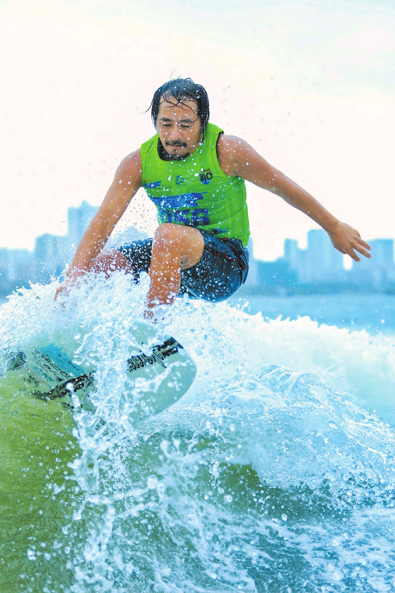 2025年尾波冲浪世界杯暨海口尾波冲浪国际公开赛期间,同步推出滑水表演、水上运动体验等活动。8月16日,市民周子方来到岸边观赛,并报名参加了桨板体验。在专业教练员的指导下,他小心翼翼地坐到了桨板上,双腿盘坐,缓慢划离岸边,“非常有意思的一次体验,让我对这项运动有了更多了解。”