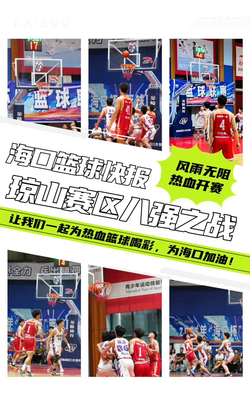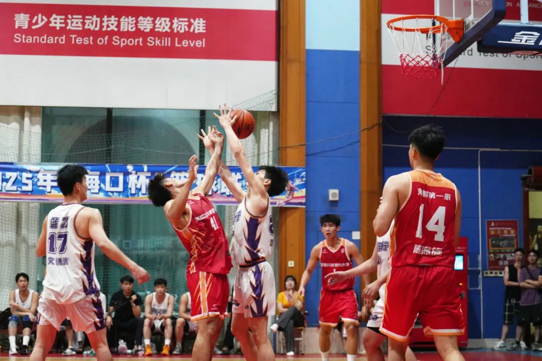 因天气影响,原定户外举行的2025“海口杯”篮球联赛琼山赛区八强淘汰赛,今晚转移至恒大旅游城运动中心室内球场火热开战!尽管天公不作美,但球员与观众的热情丝毫不减。