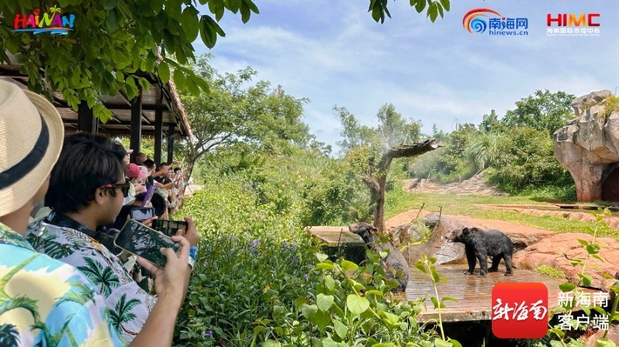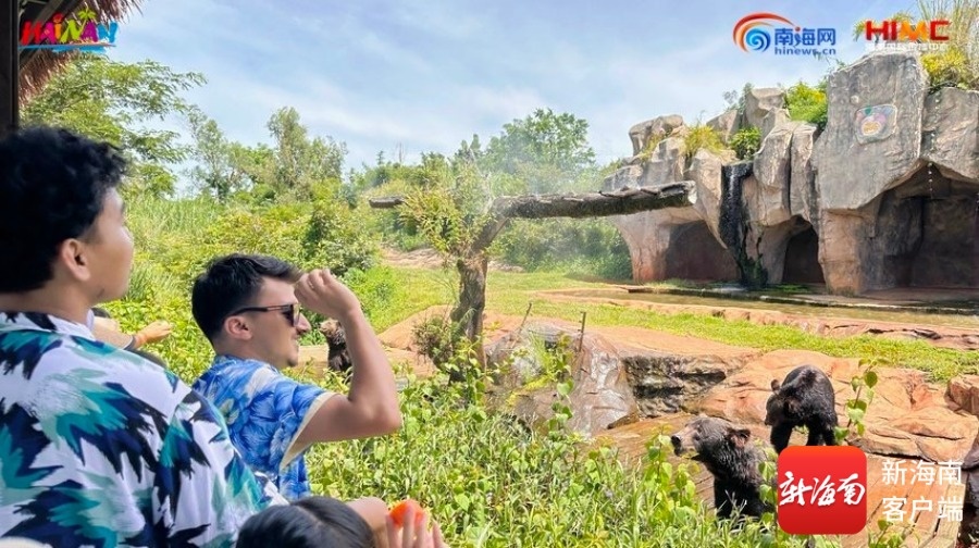 在庄布乐园——大象岛,他们投喂大象庄布,给棕熊送上胡萝卜和苹果,还与五指山白水牛互动。非洲狮、东北虎、孟加拉虎等动物让大家感受到了大自然的野性魅力。海南热带野生动植物园作为集珍稀野生动植物科普博览、保护繁殖、观光旅游等为一体的AAAA国家级旅游景区,以其丰富的动植物资源和优质的服务,为国际友人们带来了难忘的体验。“今天不仅体验了喂食长颈鹿、湾鳄、河马、大棕熊,还见到了大熊猫兄弟‘贡贡’‘舜舜’,它们圆滚滚的样子太可爱了!”来自孟加拉国的海南旅游国际推荐官阿飞开心地说道。